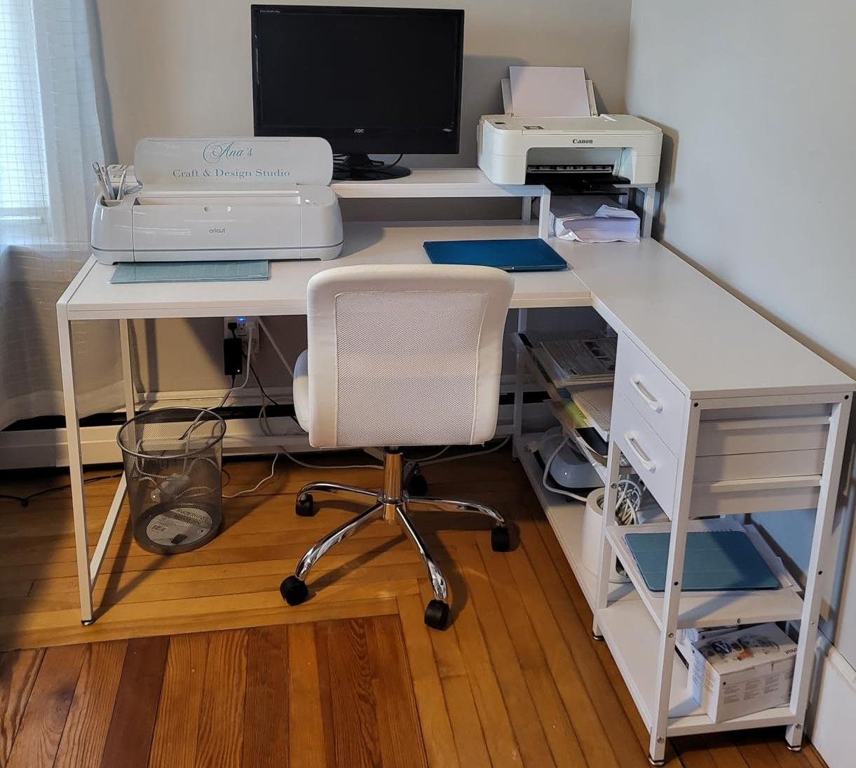 59" L-Shaped Desk, Reversible Corner Desk with Drawers & Shelves