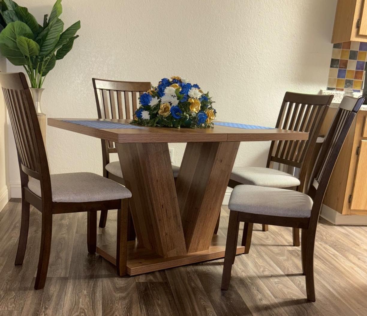 Round Dining Table for 4, 47" Wood Kitchen Table Farmhouse Dinner Table