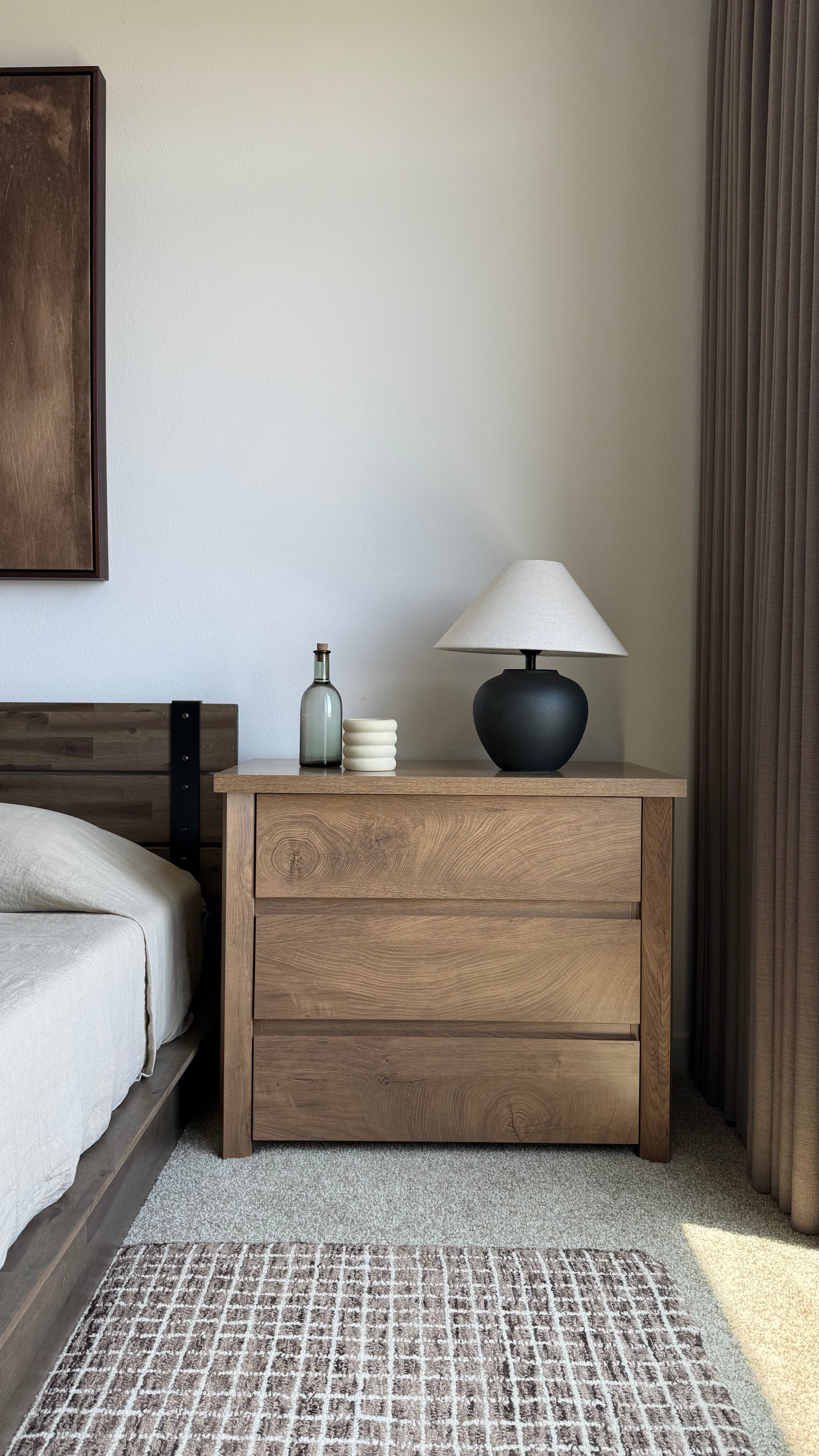 Wood Nightstand, Farmhouse Bedside Table with 3 Storage Drawers
